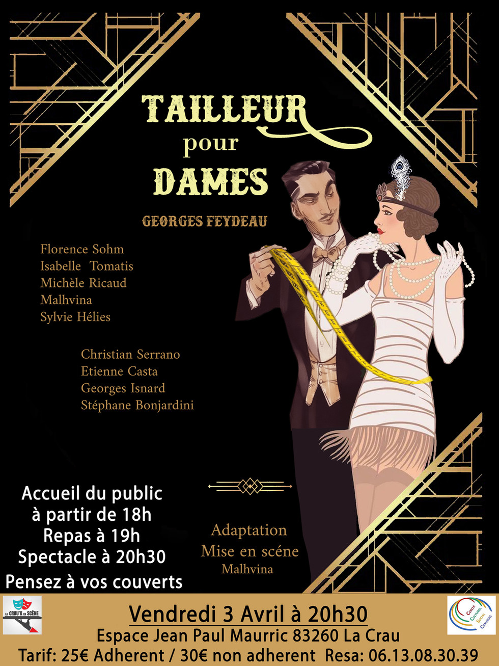 Tailleur Pour Dames3 mai 20251 min de lectureEspace Jean-Paul Maurric – La Crau (83260) Vendredi 3 Avril à 20h30Accueil du public a partir de 18h Repas à 19h